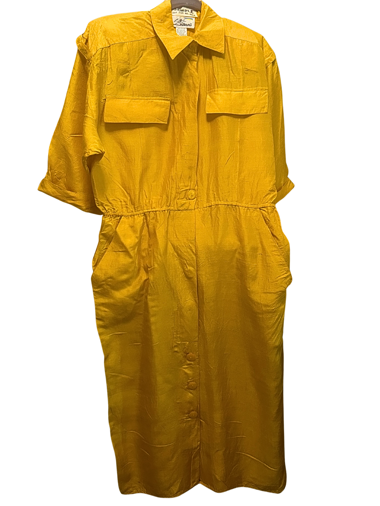 Vintage Silks by Nilani 100% Silk Button Front Dress in Gold